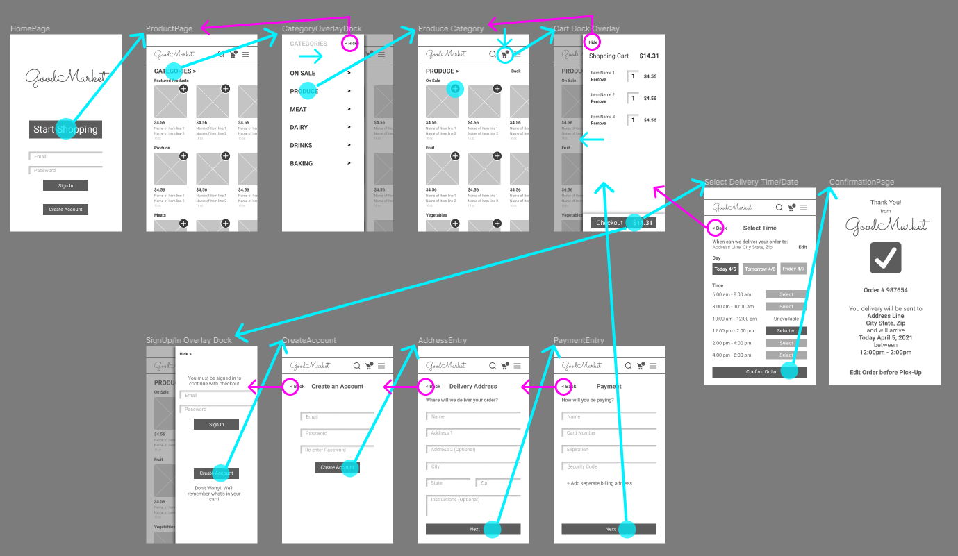 Checkout flow requires SignUp/LogIn > Billing/Delivery Info > Comfirm Pay